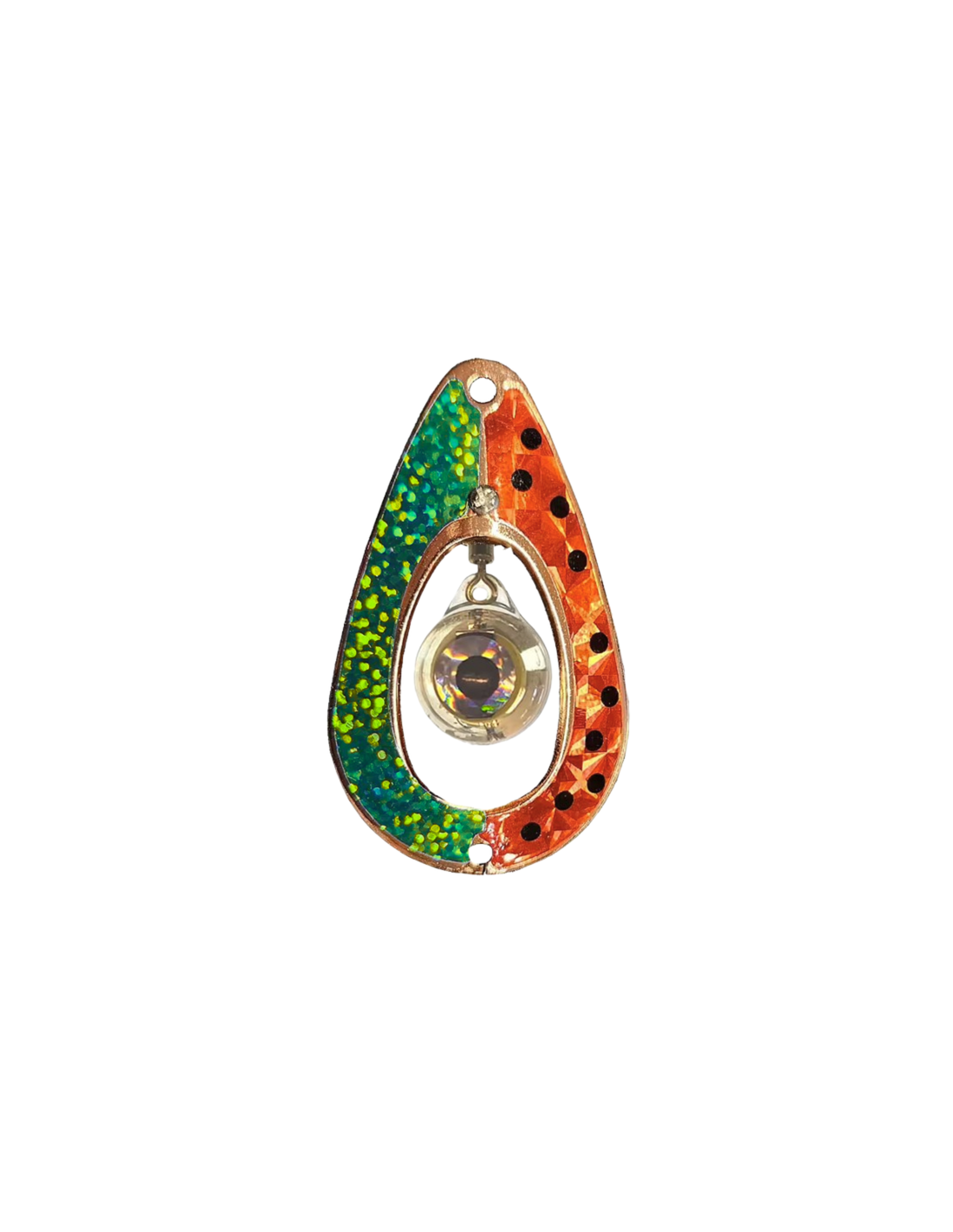 In Kallblinken you can easily change Blinkögat Micro to Klockan or mount Blinkögat mini-mini. The lure has a high gloss and clear varnish over the taping. The shape gives a wild and attractive movement in the water.