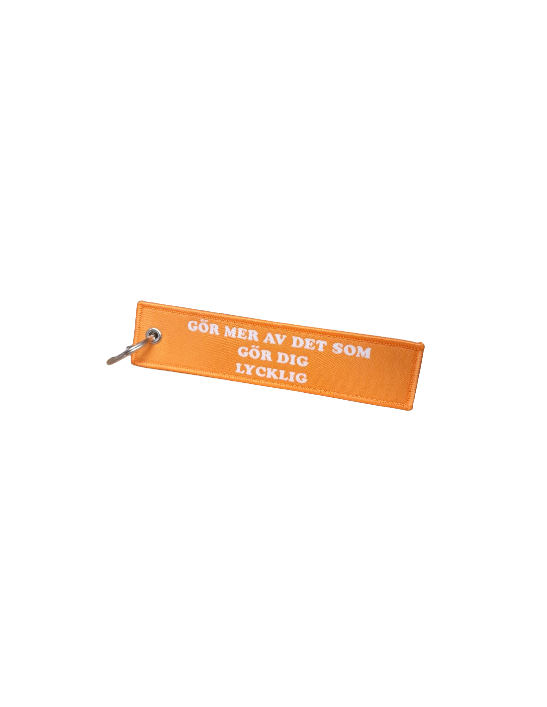 Strong with double-sided embroidery and eyelet and key ring. Length: 12.5 cm width: 3 cm.