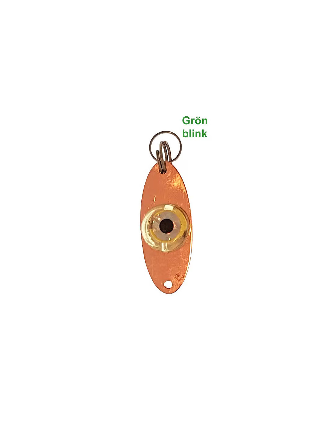 Blinkögat Mini med dubbla dioder passar utmärkt i Blinkpirken Original, eller som extra tillbehör till ett rödingblänke. Kan även med fördel fiskas som ett vanligt blänke med tafs. Det startar vid kontakt med vatten och har inbyggt batteri.