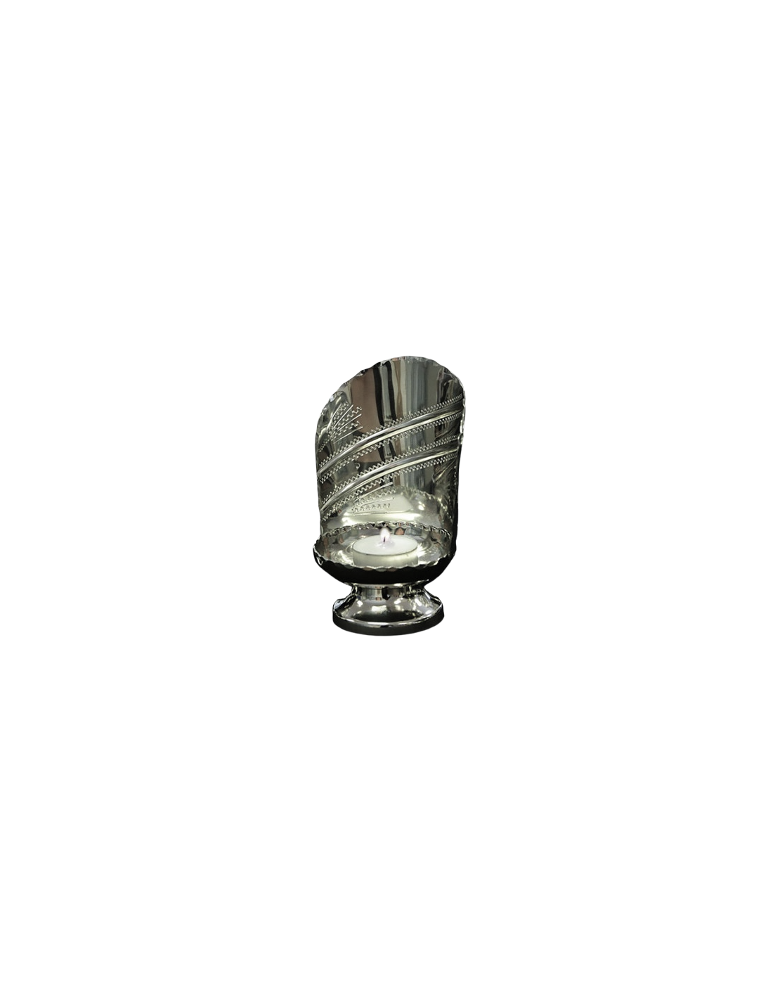 En handgjord ljuslykta i tenn med gravyr inspirerad av det mäktiga norrskenet. Lyktan ger en behaglig och stämningsfull belysning.