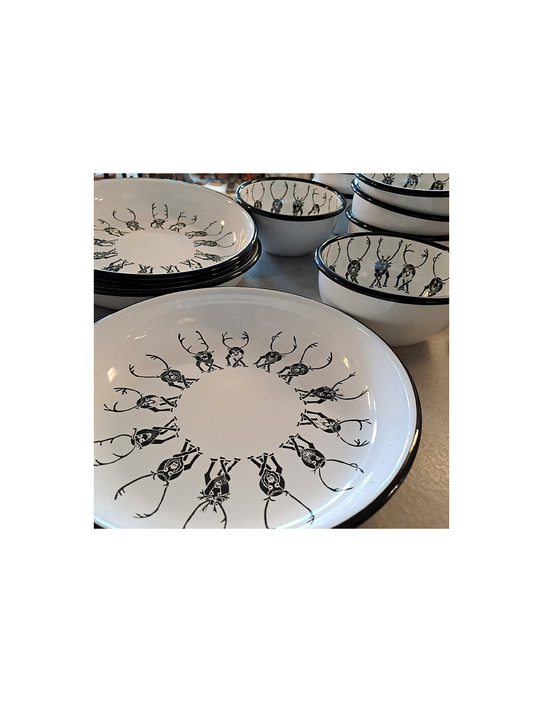 Fat med charmiga renar i en ring. Design från Jokkmokk.